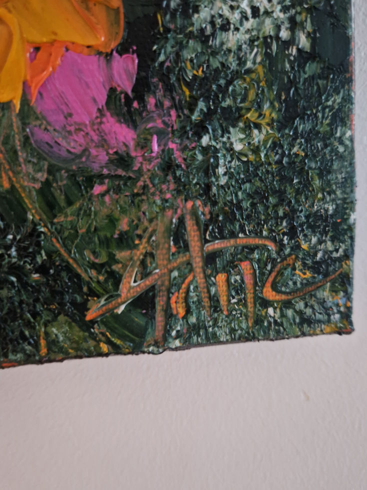Dans cette œuvre, je célèbre l'éveil de la nature. Inspiré par l'impressionnisme et l'expressionnisme, j'ai choisi les huiles pour capturer l'intensité émotionnelle des couleurs vives. Cette peinture est une danse de lumière et de couleur, une invitation à embrasser la joie et l'énergie renouvelée que chaque nouvelle journée apporte à notre foyer.