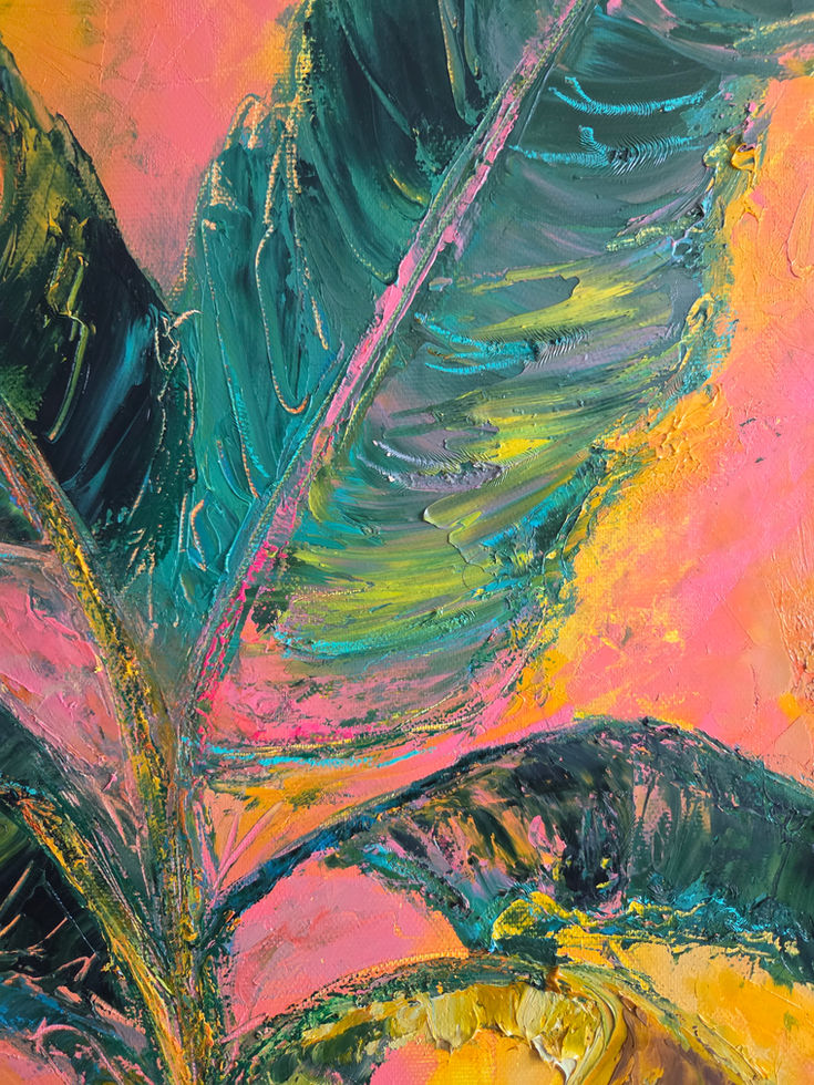 Dans cette œuvre, j’ai voulu capturer la vie vibrante et sauvage d’un bananier, symbole de chaleur et d’énergie tropicale. Les couleurs chaudes, mêlées à la texture riche de l’huile et du pastel, traduisent une émotion intense et une nature en pleine effervescence. Cette peinture apportera à votre intérieur une touche de dynamisme et de lumière rayonnante, pleine de vie et d’espoir.