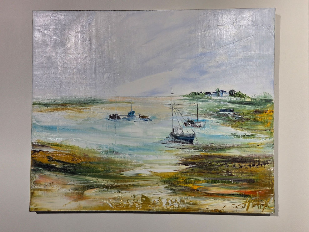 Dans cette peinture à l'huile, j'ai voulu capturer la douceur d'un petit port paisible, où chaque bateau est une invitation au calme et à la rêverie. Les touches impressionnistes évoquent la lumière changeante et la sérénité marine, pour que ce moment d'évasion illumine et apaise votre intérieur.
