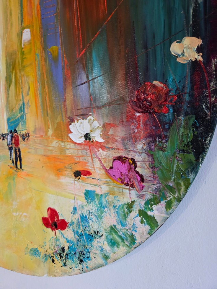 J’ai voulu capturer l’intensité d’un moment urbain où la lumière éclate avec une énergie vibrante. Les couleurs chaudes se mêlent aux ombres profondes pour exprimer la vie, la solitude et l’émerveillement. Ce tableau apportera dans votre intérieur une atmosphère dynamique, entre mouvement et rêverie, qui invite à ressentir la beauté cachée derrière l’agitation quotidienne.